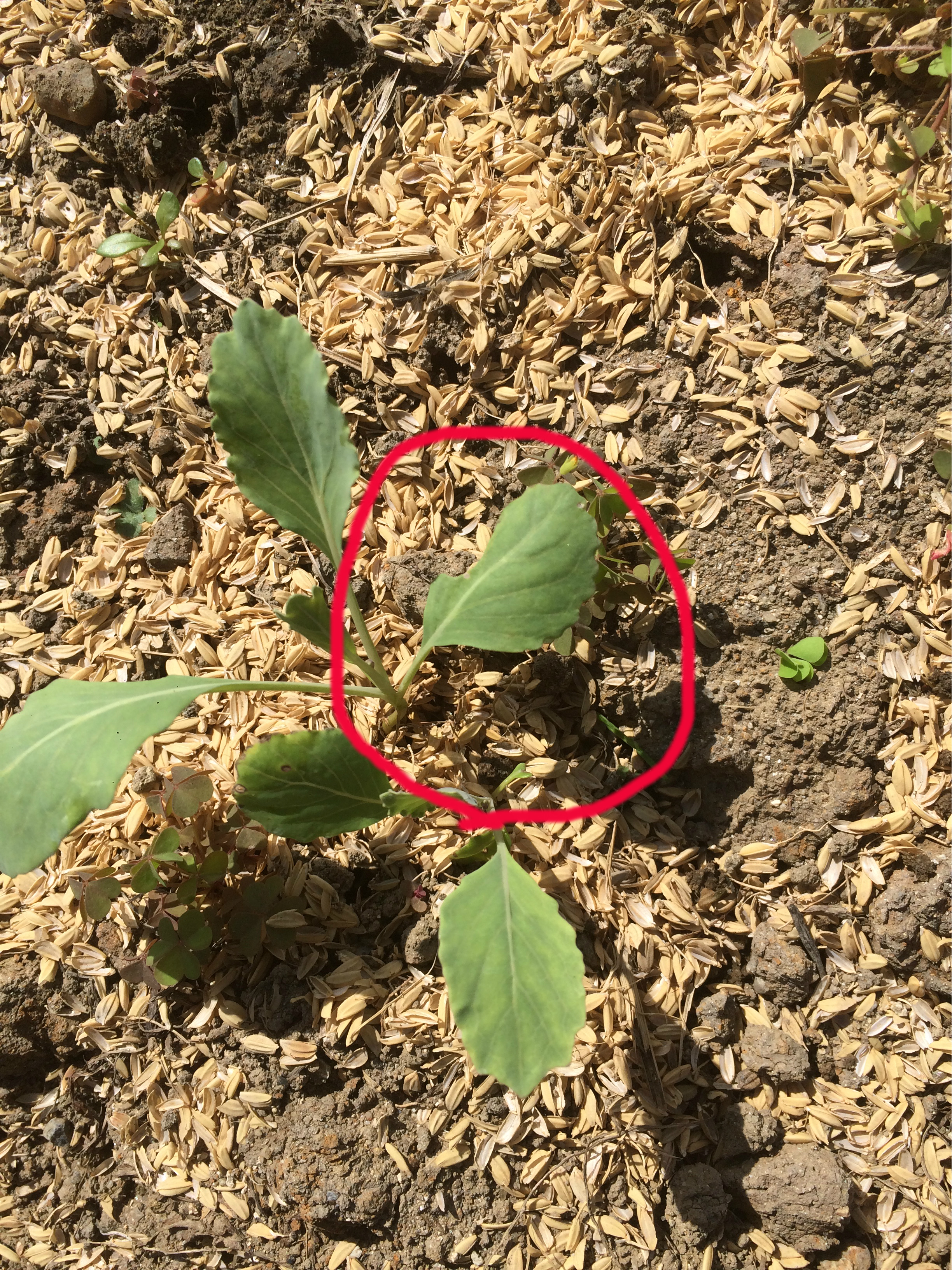 間引きをしました。赤丸の苗が抜かれたのが分かります。