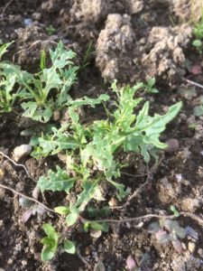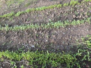 水菜はアブラナ科で虫を寄せ付けやすいため、近くに春菊を蒔きました。