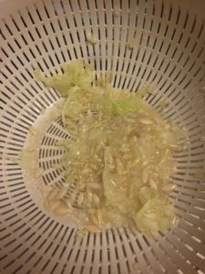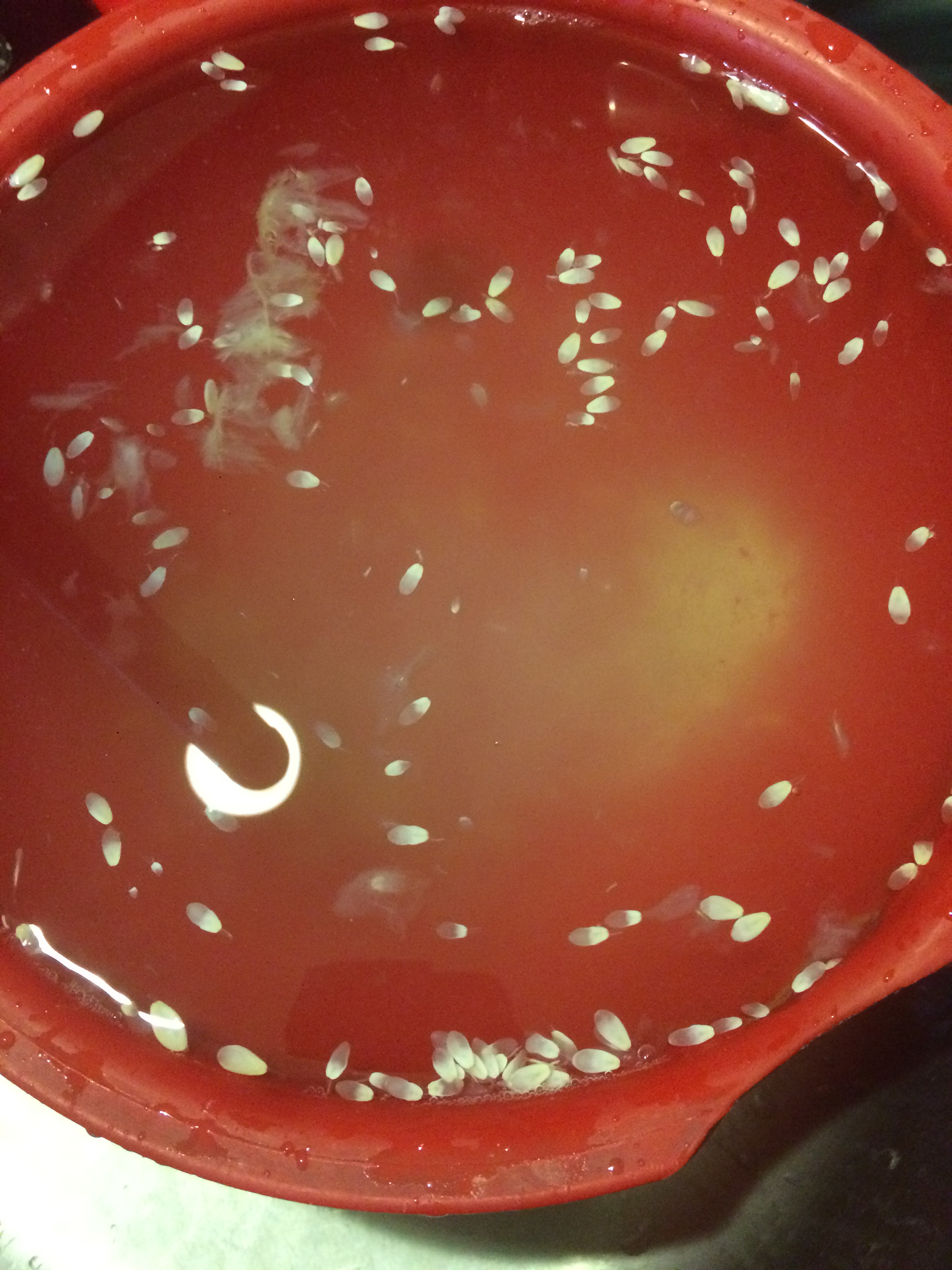 分離したので種をよく洗います。この時繊維と浮いている種は捨てましょう。