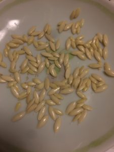 乾燥したら種が膨らんでいる種だけを残します。(膨らんでいる種は中身がたっぷり詰まっているので発芽率が高くなり、品質の良い野菜ができます。)