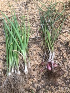 左が九条ネギ 右がアサツキ(アサツキは紫色が特徴)