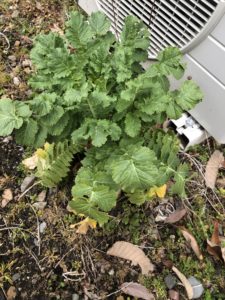 たまに行く畑の砂利道で大根が生えていました。(ここは自分の畑ではありません。)
