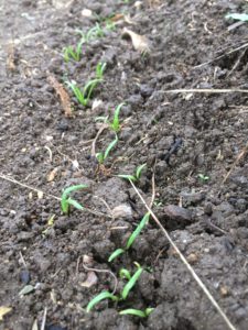 前に種まきしたほうれん草とツルムラサキの芽がでてきました。