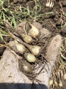 去年のらっきょうと、一昨年のらっきょうを収穫しました。