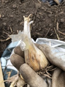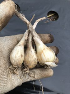 植え付けたらっきょうは、霧島大らっきょうという品種です。