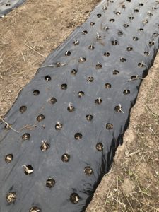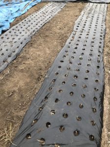 大きな球根を1粒1粒穴あきマルチに入れ植え付けました。