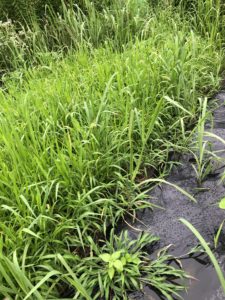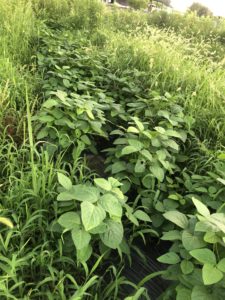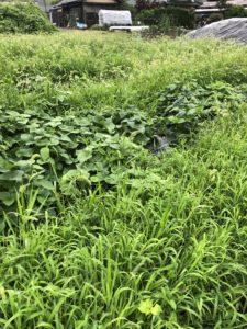 草が伸び伸びの中、栽培しております。