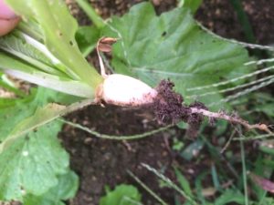 小カブは最終的にカブとカブの間(株間)を10cmにしていき、乾燥に気を付けて水やりをします。