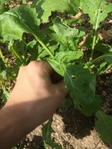 秋種まきから40日から70日で収穫できるようになり、葉と葉が触れ合うようになりましたら間引いていきます。