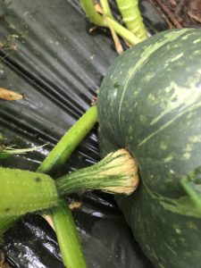 実とツルをつなぐ所(果柄)が全部白っぽくなり、コルク状になる時、もしくは、皮のツヤがなくなった時が収穫のサインとなります。
