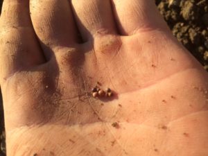 今日は種まきをしていきますが、普通はポットなどに蒔いて苗にしますが、今回は畑に直まき(じかまき)します。