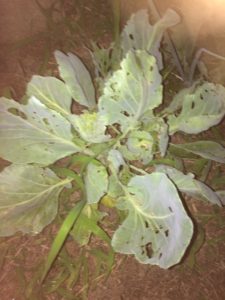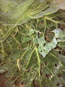 無農薬で栽培するとキャベツは青虫がいっぱいつき、青虫たちは葉っぱを食べ糞をします。