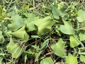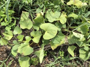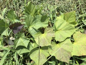 近所の方のサツマイモを見ると、黒マルチで栽培していました。