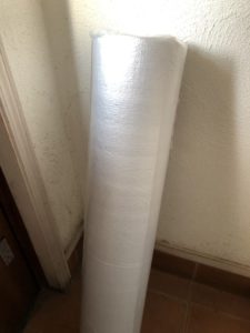 サツマイモを新聞紙で包みコンテナに入れ保存していきます。