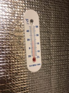中にも外にも温度計をおいて、いつでも見られるようにしました。