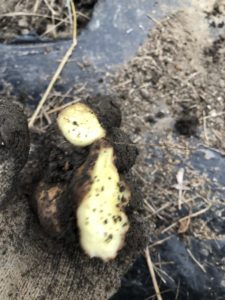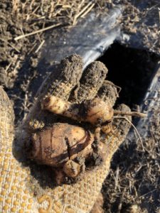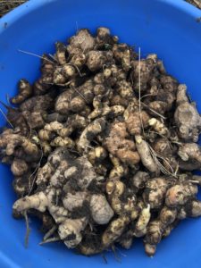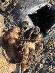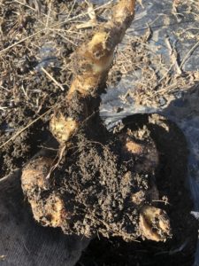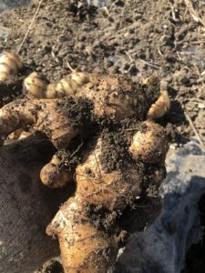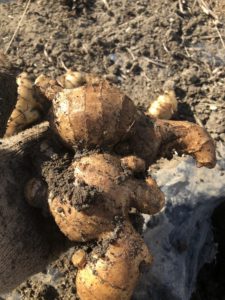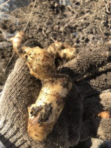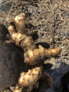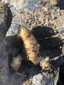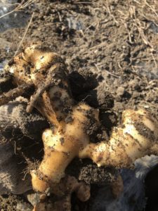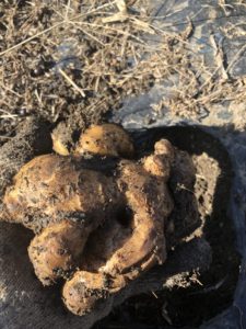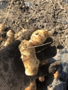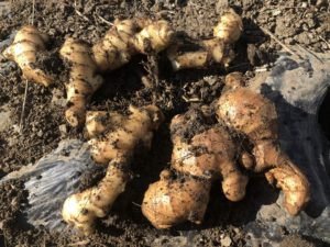 枯れ始めたので、ショウガを収穫しました。品種は霧島大ショウガです。
