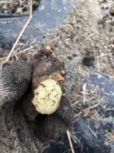 スコップで掘ると、切ってしまう事もあるため、注意です。