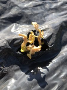 ボコっとしていたらマルチに小さな穴を開けて芽だけを出します。