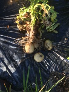 黒マルチでおおっているので、ジャガイモに太陽に当たって変色することがないですし、土寄せとかしなくていいので栽培が非常に楽に感じました。