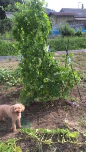 親ヅルの本葉が6枚出てきたら、そこで切ります。(摘芯)