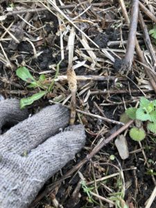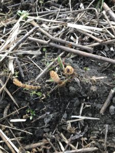 畑でツクシを発見しました。