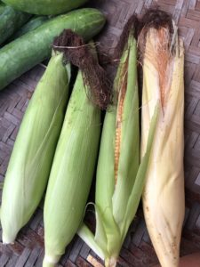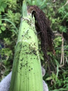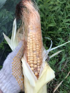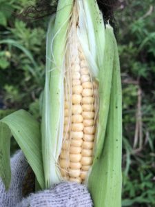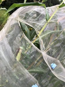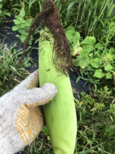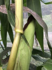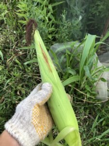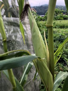 こちらは防虫ネットが足りず、露地栽培しているトウモロコシです。