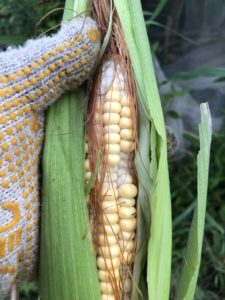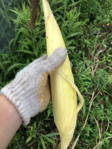 全体的に、黄色いトウモロコシを発見。これは肥料不足が原因です。