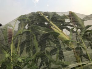 防虫ネットで害虫被害を防ぎ、収穫期を迎えています。