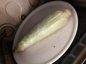 レンジで3分チンしたトウモロコシを入れ、タレも入れる。