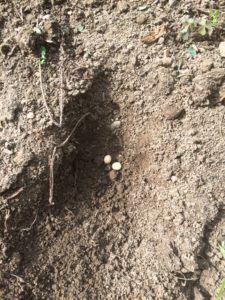 蒔く際それぞれ1か所に2粒まきます。足で踏むと発芽率が上がりますよ。