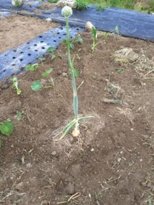 タマネギを収穫した際、トウ立ちしてしまったのがありました。ホントは収穫して食べようかと思ったのですが、そのまま放置し、種を採取することを思いつきました。