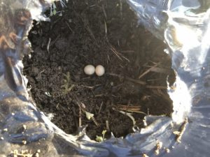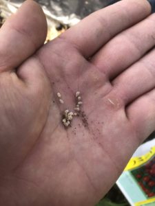 蒔く時は、1穴2粒を植穴に蒔きます。