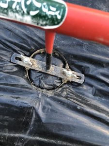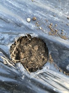 株間30cm間隔でマルチ穴開け器で、穴を開いていきます。