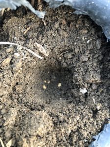 またこちらも嫌光性種子ですので、種の直径2~3倍の深さに植えていきます。