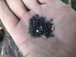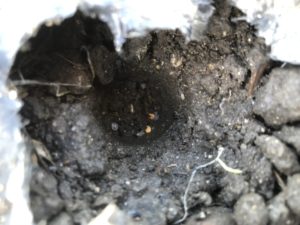 蒔く時は、1穴2粒を植穴に蒔きます。