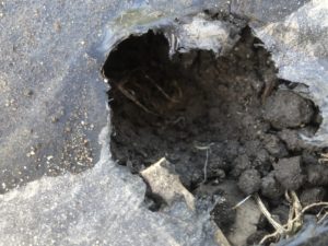 ナスと相性が良いので、株間に枝豆を蒔きます。