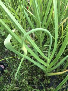 伸ばすと、そこから花が咲き、ニンニクに栄養が届きにくくなります。