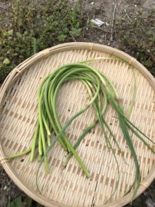 と、、、その収穫前に、にんにくの芽を取りました。