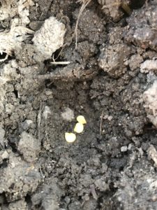 蒔く時は、1穴2粒を植穴に蒔きます。
