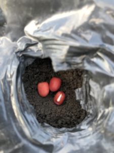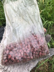 雨が止んでいる日を選び、小豆と黒豆の種まきを行いました。