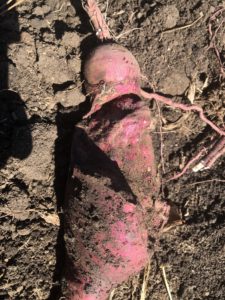 今年掘り起こした一部のサツマイモが、かじられていました。