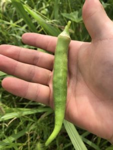オクラは生長がはやいため、写真ほどの大きさになりましたらすぐ収穫します。