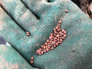 そして残りの穴に自家採種ニンジンを蒔きました。
