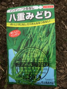 今回マメ科のツルなしインゲンを蒔き、甘長の生長を助けてもらいます。