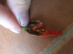 一部の唐辛子には虫食いがありました。