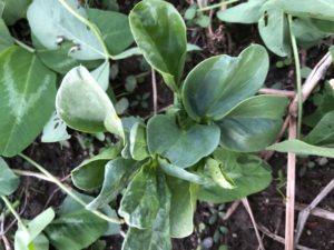 一部逆向きに蒔いてしまったそら豆ですが発芽を確認しました。