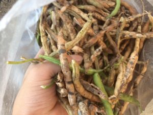 防虫ネットで育てた小豆とかけてない小豆を比較すると防虫ネットで育てた方が虫被害が少なかった。