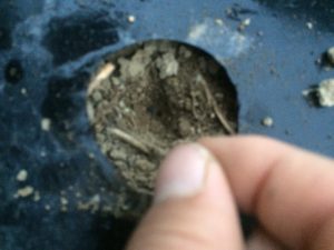 玉ねぎが大体8cm程度(鉛筆ぐらい)育ったらエンドウを2~3粒このスペースに蒔きます。