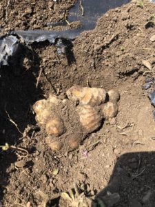 気温が高くなり次第、もみ殻や雑草をかぶせて乾燥防止します。