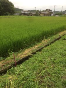 ポポ農園のお隣は田んぼで、稲が大きく育っています。